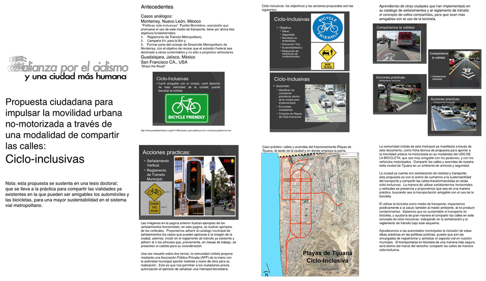 PROPUESTA CIUDADANA PARA IMPULSAR LA MOVILIDAD URBANA NO-MOTORIZADA A TRAVÉS DE UNA MODALIDAD DE COMPARTIR LAS CALLES: CICLO-INCUSIVAS, a nombre de Alianza por el Ciclismo y una Ciudad más Humana.